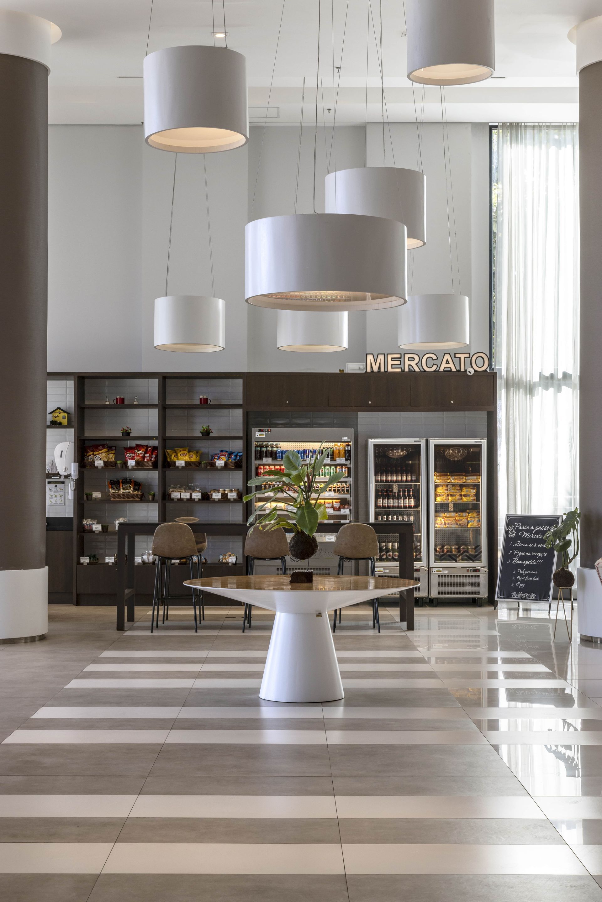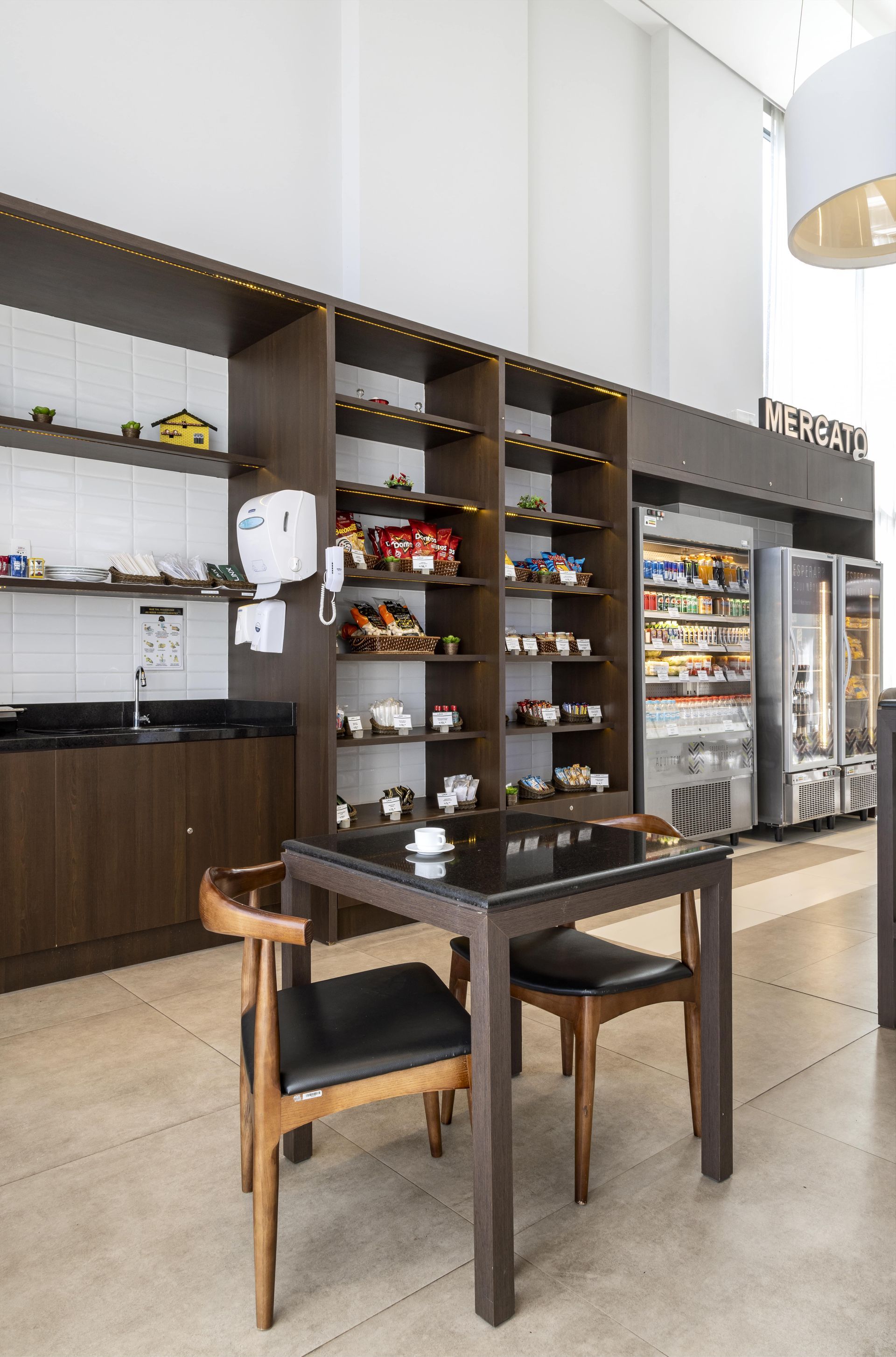 Com inspiração no conceito Grab and Go, nosso hotel também conta com um Mercato, disponível 24 horas por dia, oferecendo aos hóspedes tudo o que precisam para lanches rápidos e snacks a qualquer momento.