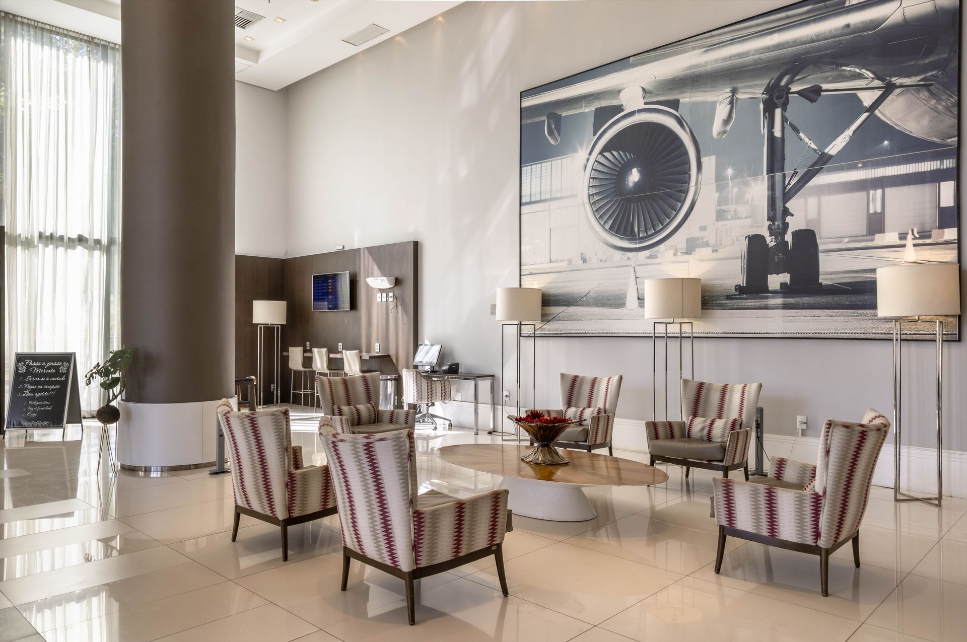 Para seus momentos de lazer, relaxe em nosso lobby com áreas para descanso e interação.