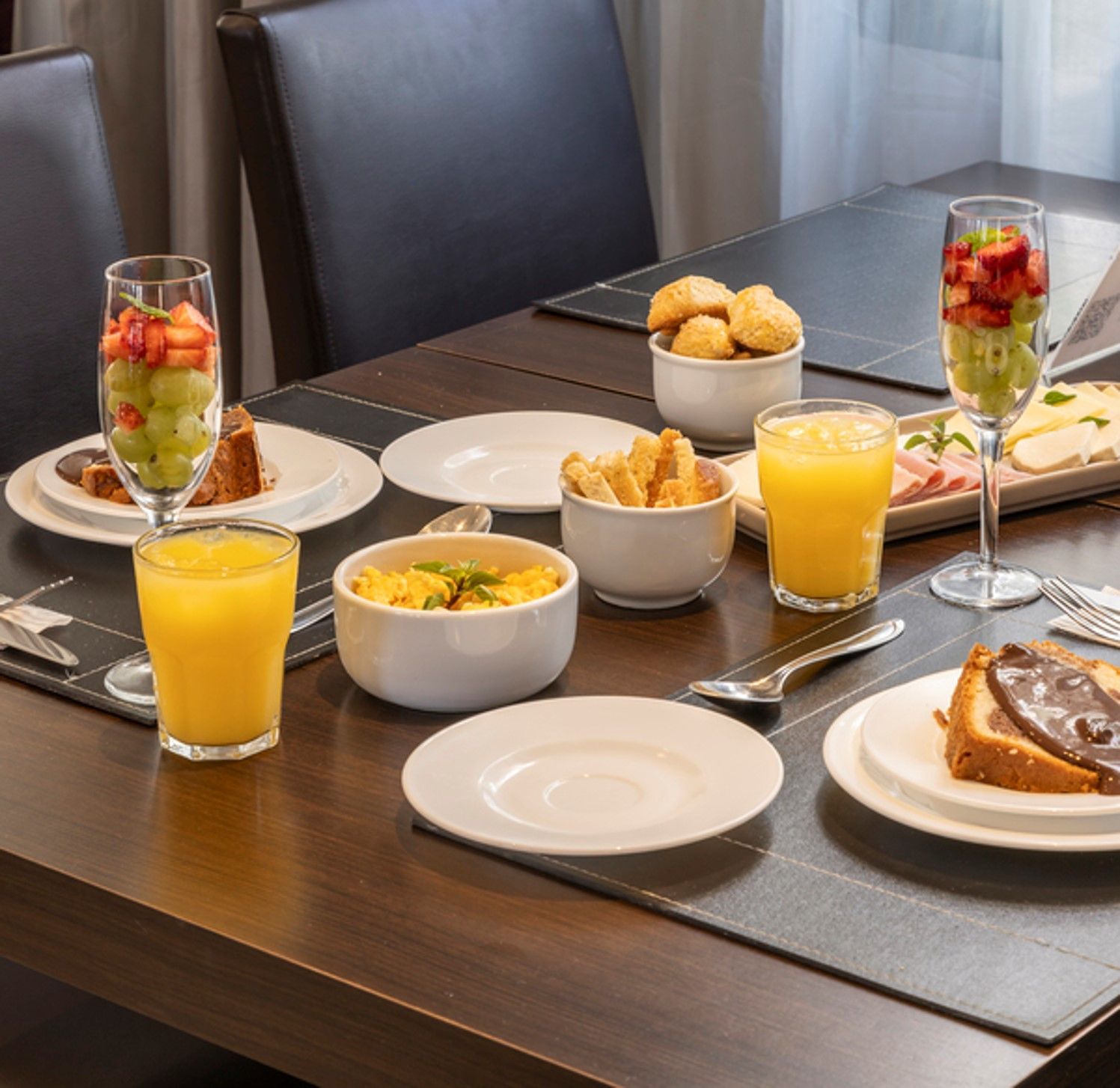Comece o dia com um delicioso café da manhã e saboreie refeições que atendem aos mais diversos paladares, em um ambiente moderno e acolhedor.